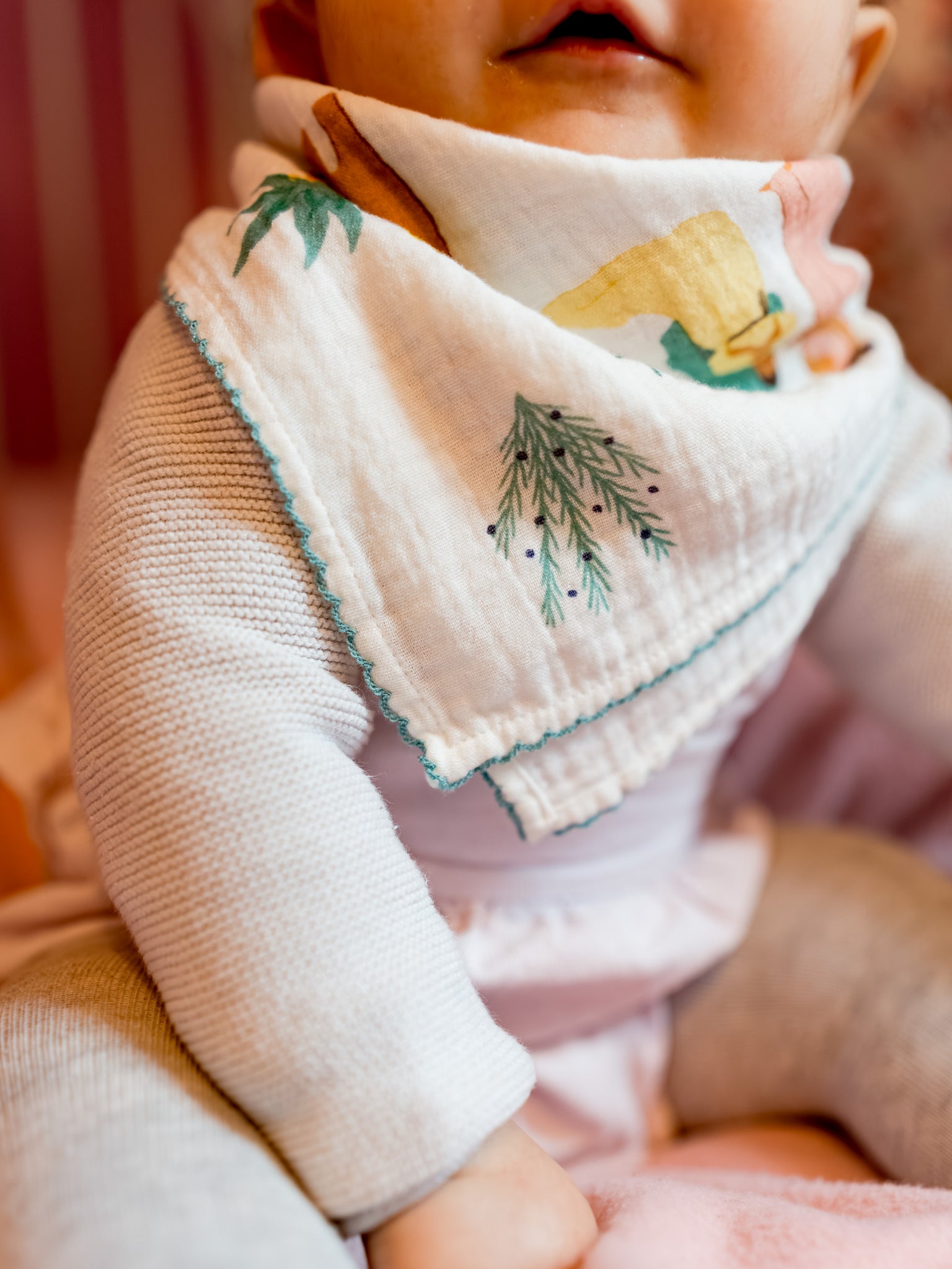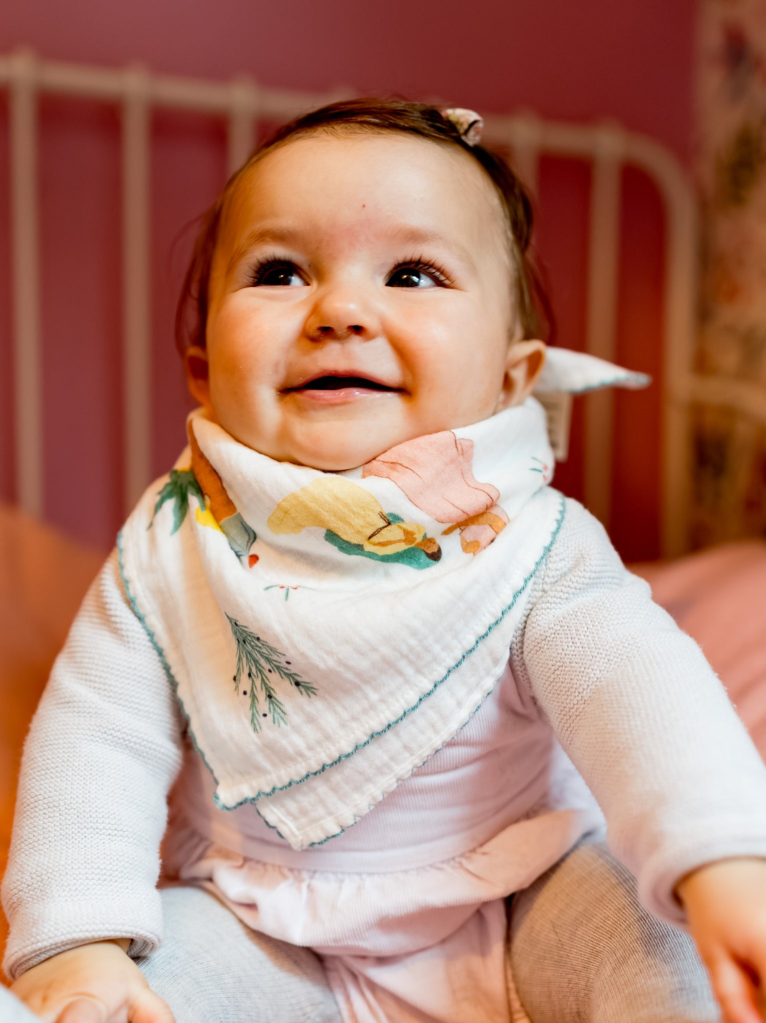 Un véritable petit foulard, aussi joli que pratique. Un indispensable du vestiaire des petits, doux et lumineux.