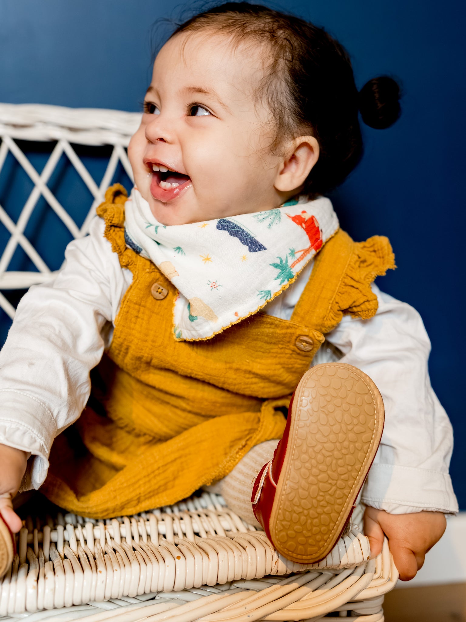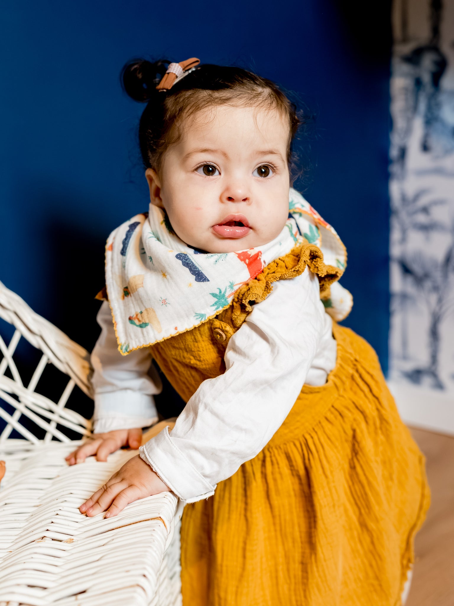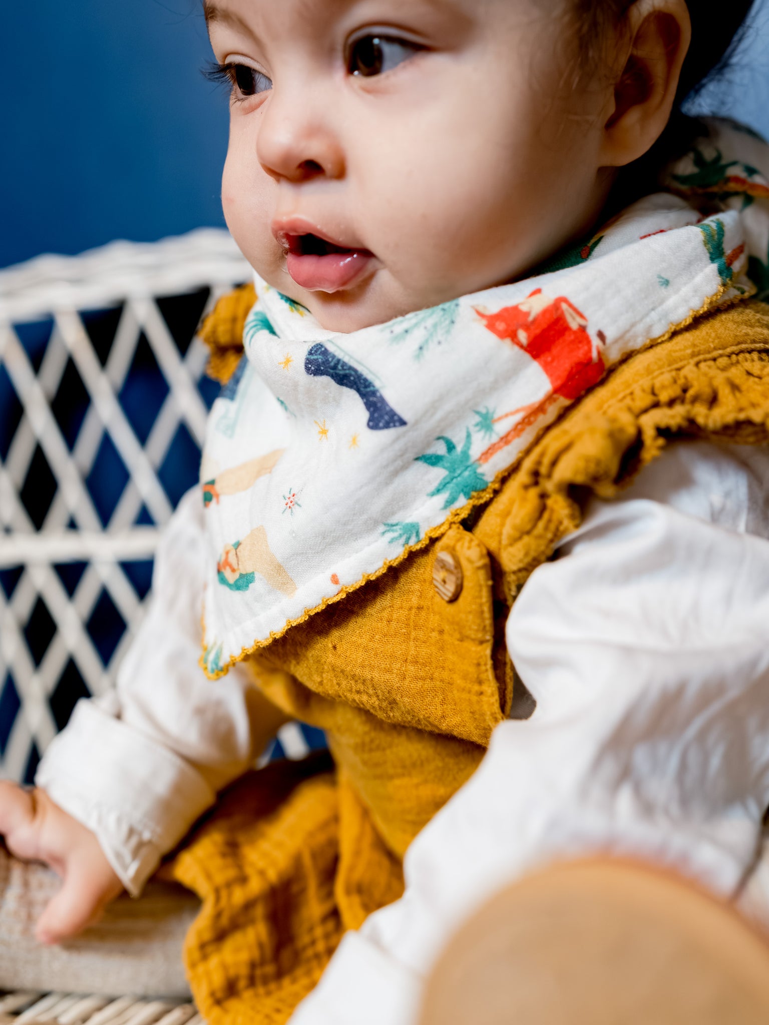 Un véritable petit foulard, aussi joli que pratique. Un indispensable du vestiaire des petits, doux et lumineux.