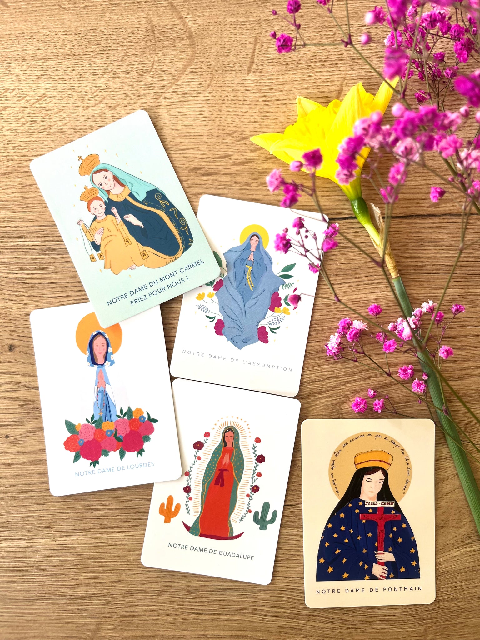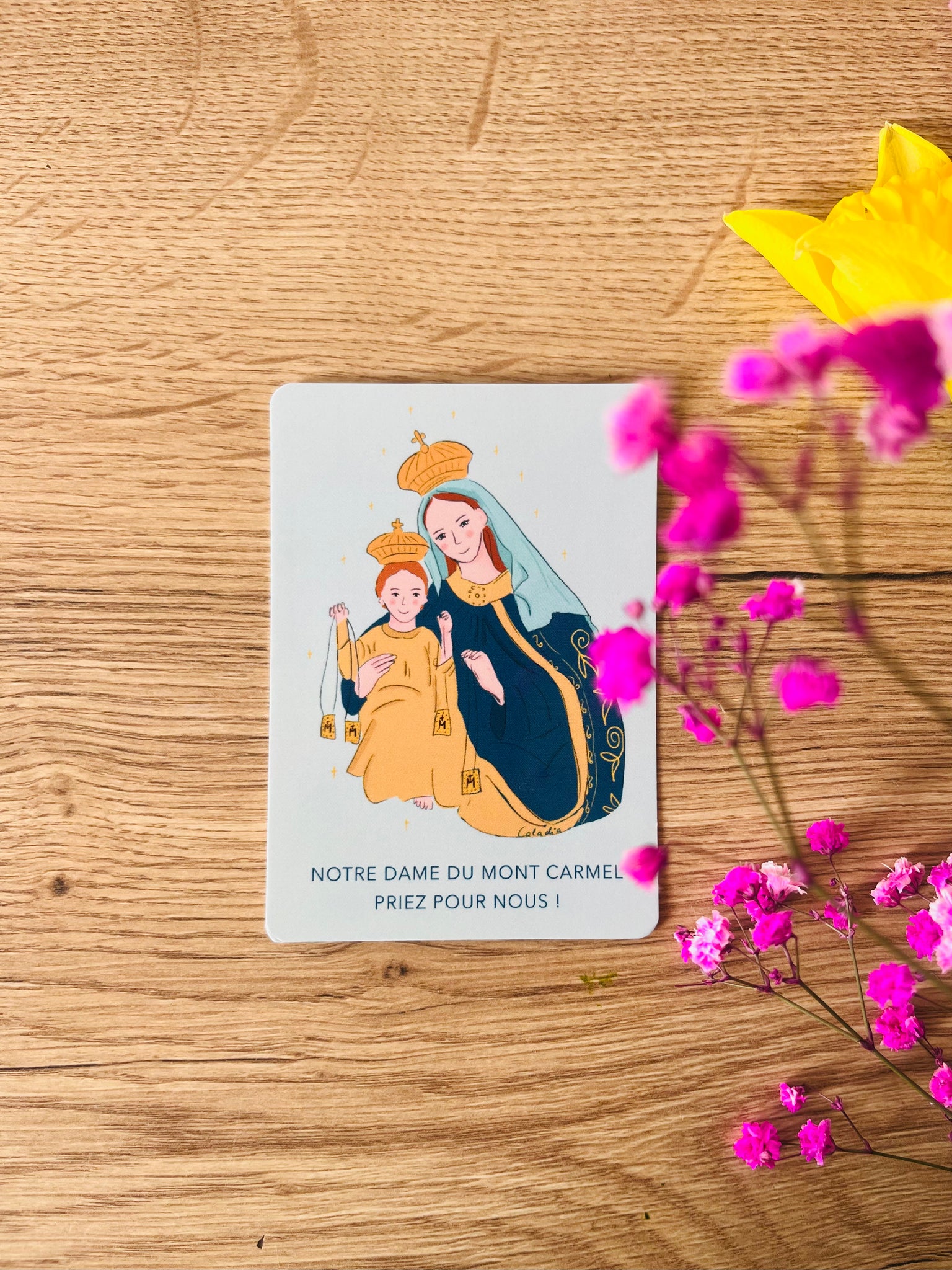 À glisser dans une enveloppe, un missel ou sur une table de fête comme un clin d’œil de foi. - Imprimée sur un papier lisse et brillant pour une belle tenue dans le temps et des couleurs éclatantes.